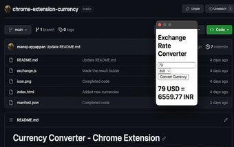 Exchange ratesは、manojayyappan2kによって開発された無料のChrome拡張機能です。これは、ブラウザ、特にアドオン&ツールのカテゴリに属しています。この拡張機能は、特にUSDからINR、EURO、CAD、JPYなどへの通貨変換を簡単に行うための便利な方法を提供します。